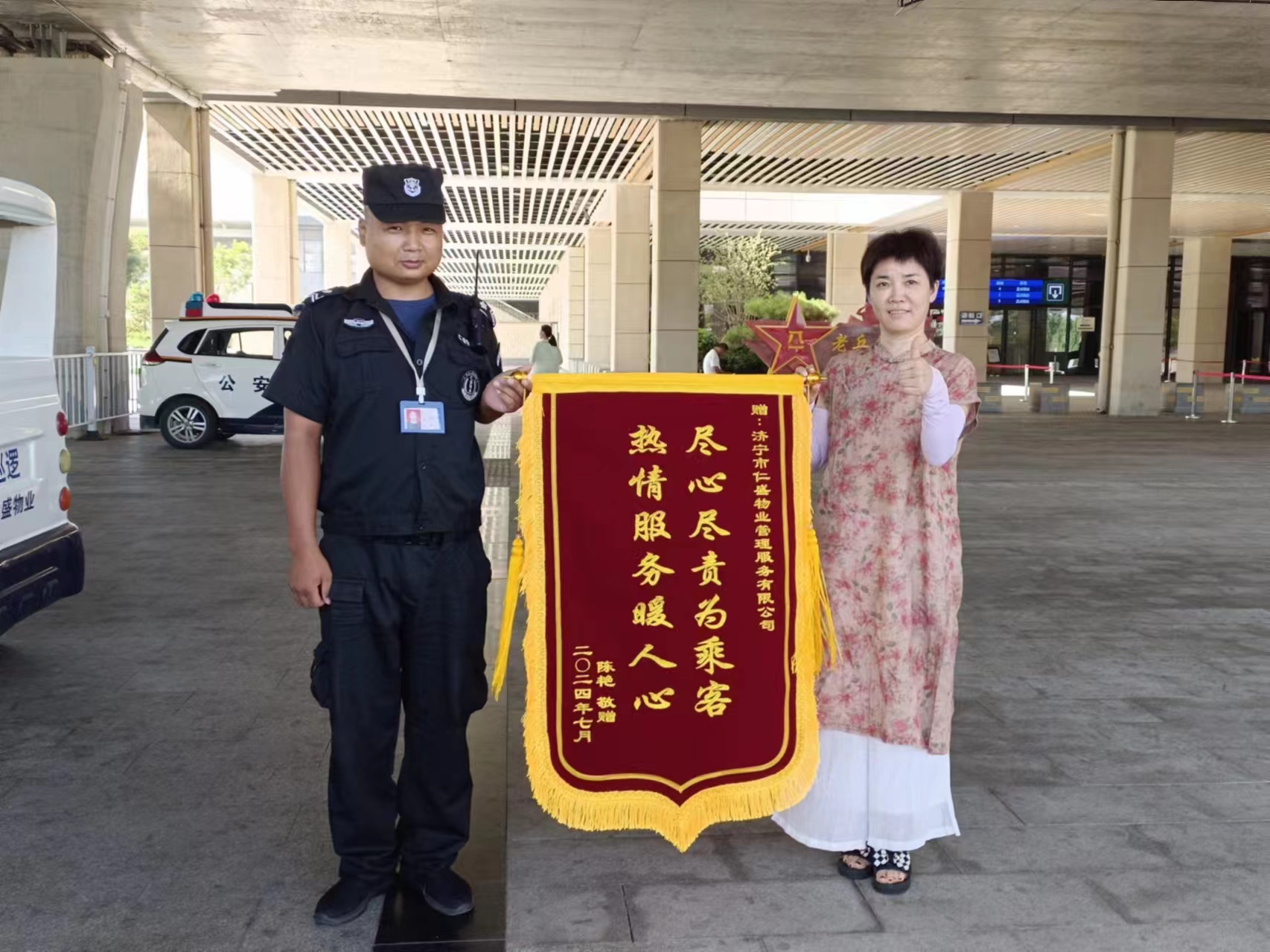 2024年7月17日下午,高鐵北站站前廣場(chǎng)物業(yè)收到了一份特殊禮物——一幅“盡心盡責(zé)為乘客,熱情服務(wù)暖人心的錦旗”。旅客陳艷女士不遠(yuǎn)百里感謝高鐵北站保安部,全心全意為旅客服務(wù)解難題。